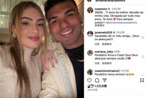 卡塞米羅社媒寫道:6月28日,這是我一生中最棒的決定走過的第11年。謝謝你的一切,我的愛人,我愛你 ?? 永遠(yuǎn)在一起。