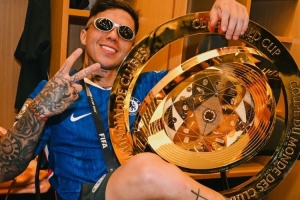 恩佐社媒曬出自己戴著墨鏡與世俱杯獎(jiǎng)杯的合照,配文:“切爾西!世界冠軍??????”