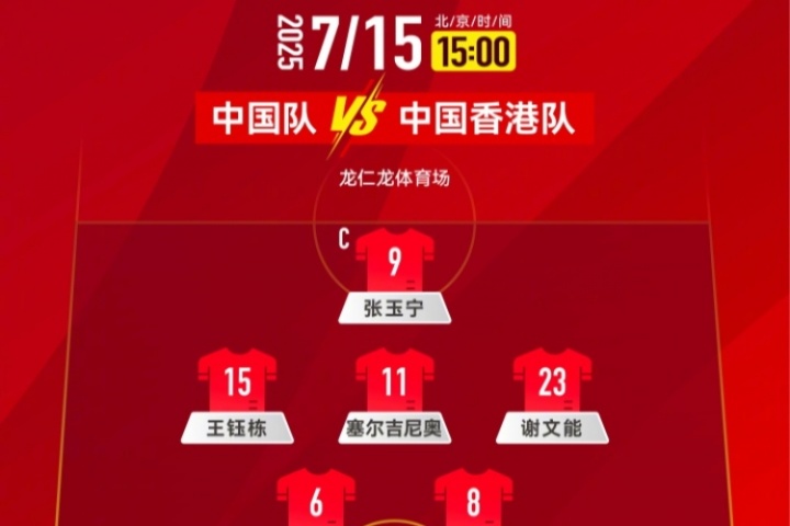 體育資訊07月15日訊 北京時間今日下午15:00,東亞杯第3輪,國足vs中國香港。賽前國足官方公布了首發(fā)陣型。