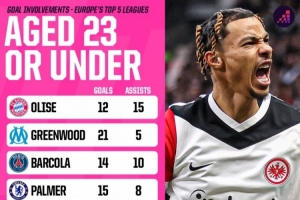 體育資訊7月15日訊 江山代有人才出,世界足壇的少年天才如今已經(jīng)扛起各自球隊的進攻大旗。據(jù)Opta數(shù)據(jù)統(tǒng)計,歐洲五大聯(lián)賽23歲及以下球員參與進球榜中,其中拜仁前鋒奧利塞27個居首。