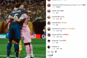 體育資訊6月30日訊 巴黎在世俱杯16強戰(zhàn)4-0淘汰邁阿密國際,隊長馬爾基尼奧斯在賽后通過社媒曬照紀念。