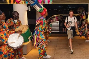 圣基茨和尼維斯聯(lián)邦副總理杰弗里-漢利和旅游部長(zhǎng)瑪莎-T-亨德森迎接了帕爾默,一支當(dāng)?shù)貍鹘y(tǒng)表演團(tuán)隊(duì)也到場(chǎng)為其獻(xiàn)上地道的圣基茨式歡迎。帕爾默在降落后表示:“在贏得世俱杯后來到圣基茨,感覺特別有意義。這里是我祖父對(duì)足球熱愛的開始,這個(gè)島既美麗又寧靜,我迫不及待想要探索這里的山脈、雨林和大海,還要品嘗當(dāng)?shù)氐拿朗??!?/p>