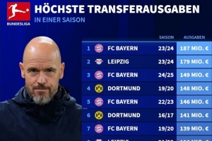 體育資訊7月16日訊 據(jù)德國轉(zhuǎn)會(huì)市場(chǎng)統(tǒng)計(jì),勒沃庫森夏窗引援支出突破1億歐元,成為第5家單賽季引援支出多于1億歐的德甲俱樂部。
