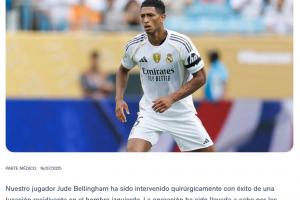 體育資訊07月16日訊 皇馬官方消息,球隊中場貝林厄姆今天成功接受左肩復(fù)發(fā)性脫臼手術(shù)。據(jù)報道,貝林厄姆預(yù)計10-12周之后復(fù)出。