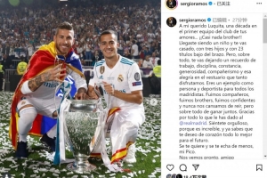 我們?cè)顷?duì)友,是兄弟,是知己,我們從未停止過歡笑,但更重要的是,我們一起贏得了無數(shù)勝利。感謝你為皇馬付出的一切。你應(yīng)該感到驕傲,因?yàn)槟愕某删头欠?,我從心底祝你未來一切順利?/p>
