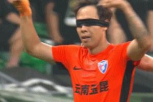 體育資訊06月30日訊 中超第16輪,北京國安vs云南玉昆。比賽第29分鐘,葉楚貴破門,云南玉昆客場1-0領先北京國安!進球后葉楚貴上演拉眼罩式慶祝。