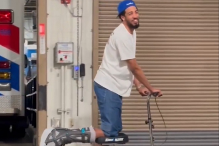 體育資訊07月19日訊 今日WNBA全明星賽在印第安納舉行。步行者當(dāng)家球星泰瑞斯-哈利伯頓穿著保護(hù)靴,乘著車來到了現(xiàn)場(chǎng)。