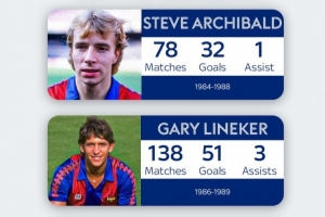 據(jù)天空體育的統(tǒng)計,在現(xiàn)代足球史上,僅有三名英國球員代表巴薩出戰(zhàn)過,分別是史蒂夫-阿奇博爾德、萊因克爾以及馬克-休斯。