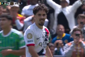 體育資訊06月24日訊 世俱杯巴黎vs西雅圖海灣人第35分鐘,維蒂尼亞禁區(qū)外插上勁射,皮球擊中K77后變線入網(wǎng)。此時比分變?yōu)榘屠?-0領先。這球判定為K77的進球。