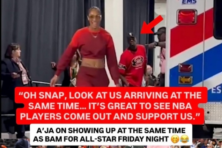 體育資訊07月20日訊 WNBA全明星,阿賈-威爾遜與阿德巴約穿著紅色著裝一前一后進場。