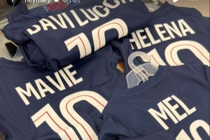 巴黎俱樂(lè)部向內(nèi)馬爾一家贈(zèng)送球衣,內(nèi)馬爾社媒曬出球衣照片,配文:“感謝巴黎?!?/p>