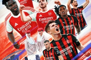 今日阿森納官方社媒發(fā)布季前賽對(duì)陣AC米蘭的海報(bào),海報(bào)中槍手薩卡、厄德高、賴斯 VS 米蘭普利西奇、萊奧等球員。