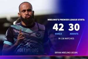 數(shù)據(jù)統(tǒng)計(jì)顯示,姆貝莫136場(chǎng)英超貢獻(xiàn)42球30助攻,庫尼亞82場(chǎng)英超貢獻(xiàn)29球13助攻。