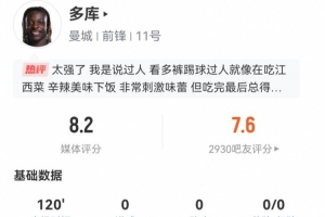 體育資訊7月1日訊 利雅得新月在世俱杯16強(qiáng)戰(zhàn)4-3淘汰曼城,多庫本場數(shù)據(jù)如下:
