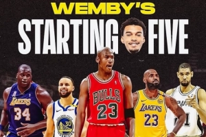 體育資訊6月22日訊 此前結(jié)束少林寺修行的馬刺新星文班亞馬赴紐約參加Fanatics Fest狂歡節(jié),在現(xiàn)場他被問及個人心中的歷史最佳五人組,他給出的答案是: