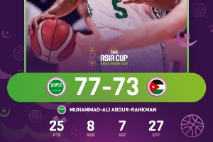 體育資訊08月08日訊 在今天凌晨結(jié)束的一場亞洲杯比賽中,東道主沙特阿拉伯77-73力克約旦。