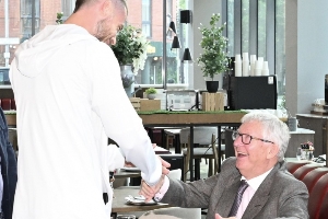 賽前,弗格森與德赫亞共進(jìn)晚餐,兩人滿臉笑容擁抱熱聊。