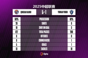 26/10 - 青島海牛本場比賽26次射門10次射正,期望進球值為3.93,都刷新有數(shù)據(jù)統(tǒng)計以來(自2012年),球隊單場中超紀錄。