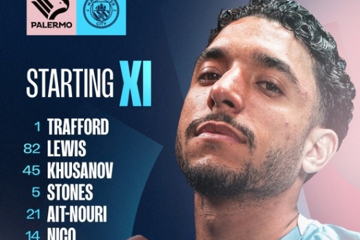 曼城首發(fā):1-特拉福德、82-劉易斯、45-胡桑諾夫、5-斯通斯、21-努里、14-尼科-岡薩雷斯、33-奧賴?yán)?2-鮑勃、29-謝爾基、7-馬爾穆什、9-哈蘭德