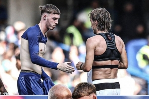 體育資訊8月11日訊 友誼賽,切爾西4比1擊敗AC米蘭。賽后,賽場上出現(xiàn)溫情一幕:米蘭中場核心莫德里奇與切爾西新星帕爾默互換球衣。