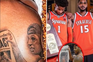 2003年,卡梅隆-安東尼率領(lǐng)雪城大學(xué)奪得NCAA總冠軍,基揚(yáng)將安東尼奪冠后的經(jīng)典海報中的“CHAMPS(冠軍)”字樣改成了“LEGACY(傳承)”,并紋在了自己的左臂。