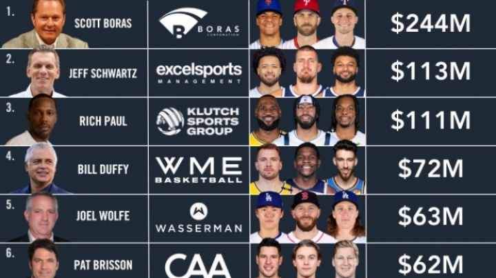 體育資訊08月13日訊 《福布斯》公布2025年體育經(jīng)紀(jì)人的傭金榜單,其中最為我們熟知的里奇-保羅僅排名第三。