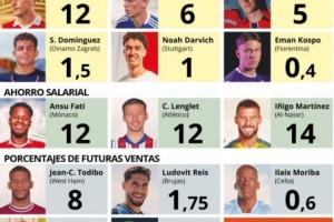 到目前為止,巴薩已經(jīng)在德科的帶領(lǐng)下通過轉(zhuǎn)會(huì)、租借、二轉(zhuǎn)分成以及節(jié)省工資等方式入賬近7500萬(wàn)歐。伊尼戈突然轉(zhuǎn)會(huì)利雅得勝利,不僅為巴薩節(jié)省出了約1400萬(wàn)歐工資,球員還放棄了7月薪水和尚未付清的款項(xiàng)。此外,法蒂外租和朗格萊自由轉(zhuǎn)會(huì)馬競(jìng)也分別為巴薩節(jié)省了1200萬(wàn)歐年薪。