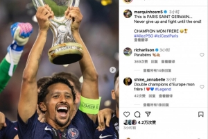 賽后,巴黎隊長馬爾基尼奧斯更新社媒曬出捧杯歡慶照片,并配文寫道:這就是巴黎圣日耳曼,永不放棄堅持戰(zhàn)斗到最后!冠軍,我的兄弟 ????