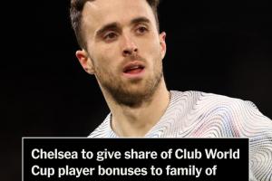 切爾西俱樂部將把部分世俱杯賽事獎金用于向若塔與安德烈-席爾瓦的家屬提供經濟捐助。這家西倫敦俱樂部在今年七月的新澤西大都會人壽球場決賽中3-0戰(zhàn)勝巴黎圣日耳曼,成為國際足聯(lián)改制后的首屆世俱杯冠軍,賽事總計為俱樂部帶來約1.146億美元(8440萬英鎊)收入。